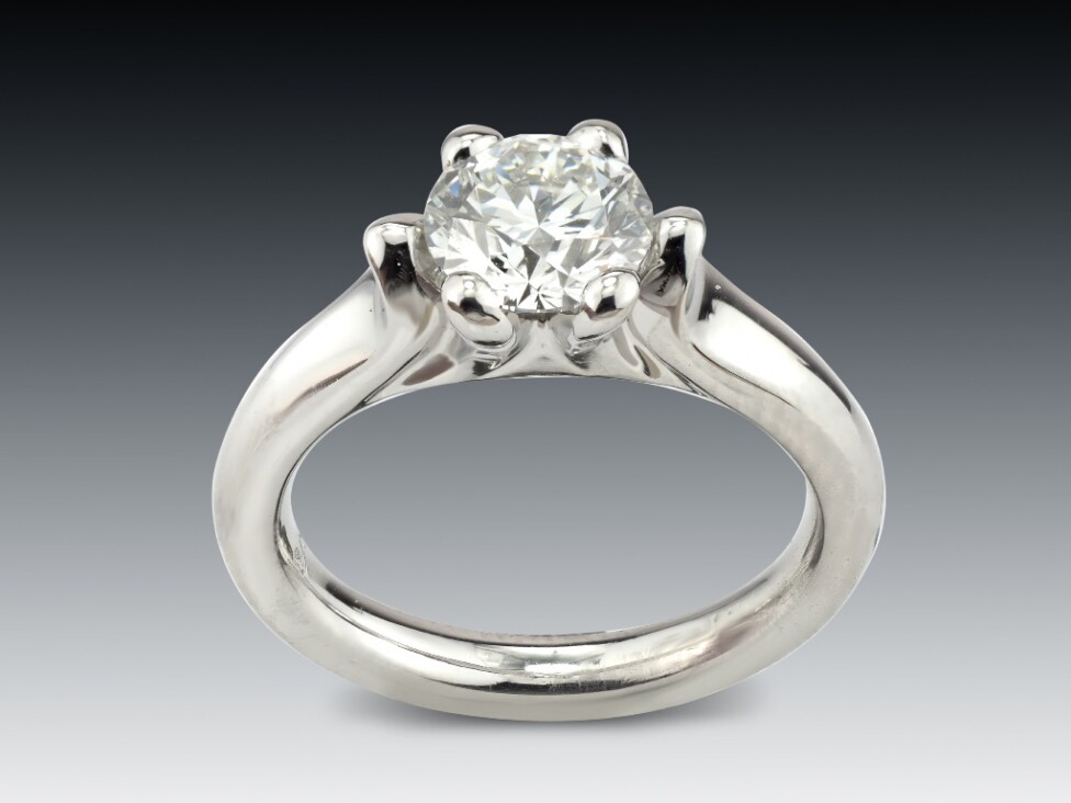 This 14k diamond solitaire engagement ring is a custom designed and handcrafted piece from our studio in Boston.