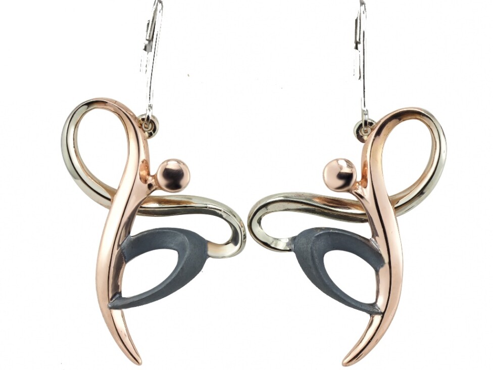 These 14k rose gold, white gold and sterling silver dancer earrings are one of a kind. They were handcrafted at our studio in Boston.