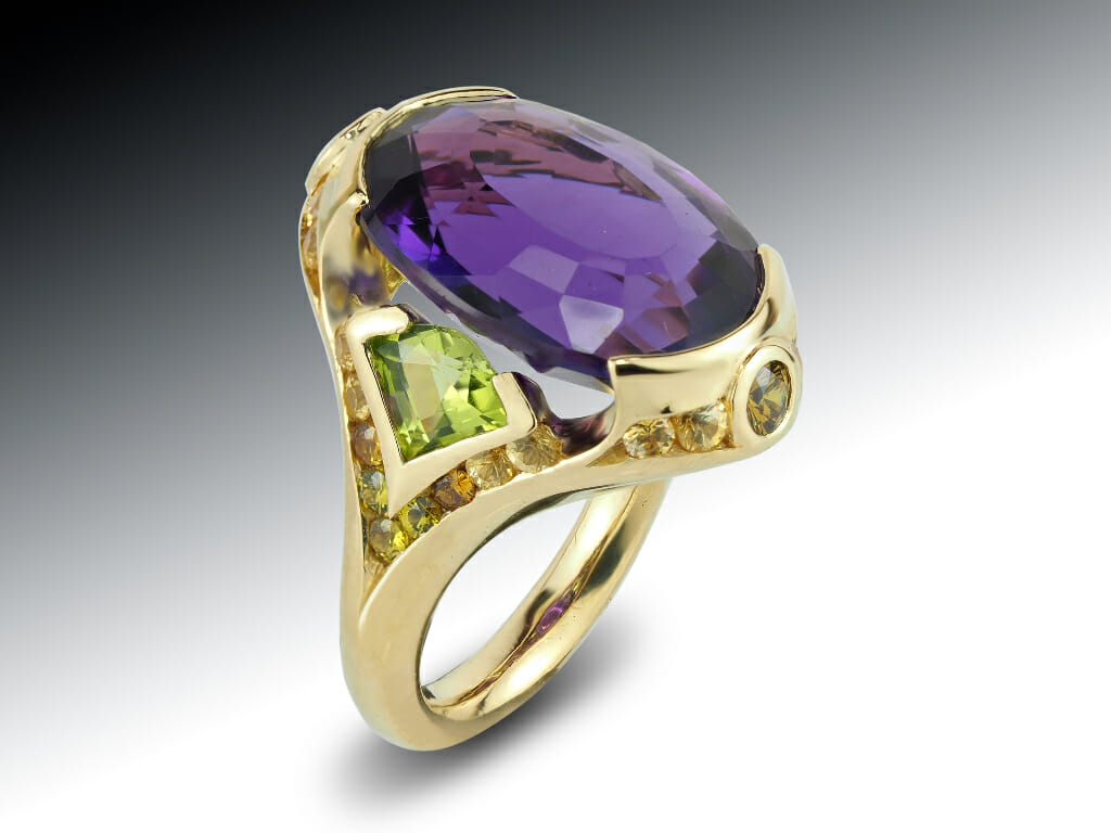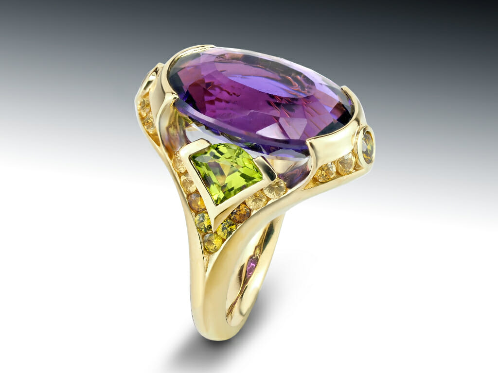 View Larger Image View Larger Image Amethyst Peridot and Garnet RingCaitlin2023-03-31T13:25:27-04:00 Amethyst Peridot and Garnet RingThis amethyst peridot and garnet ring is a custom designed piece handcrafted at our shop in Boston. Share This Story, Choose Your Platform! FacebookXLinkedInTumblrPinterestEmail Related Projects