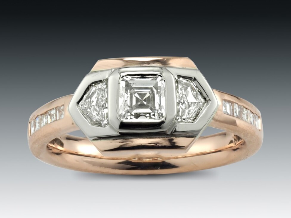 This art deco two tone diamond ring was a custom designed and handmade engagement ring from our studio in Boston.