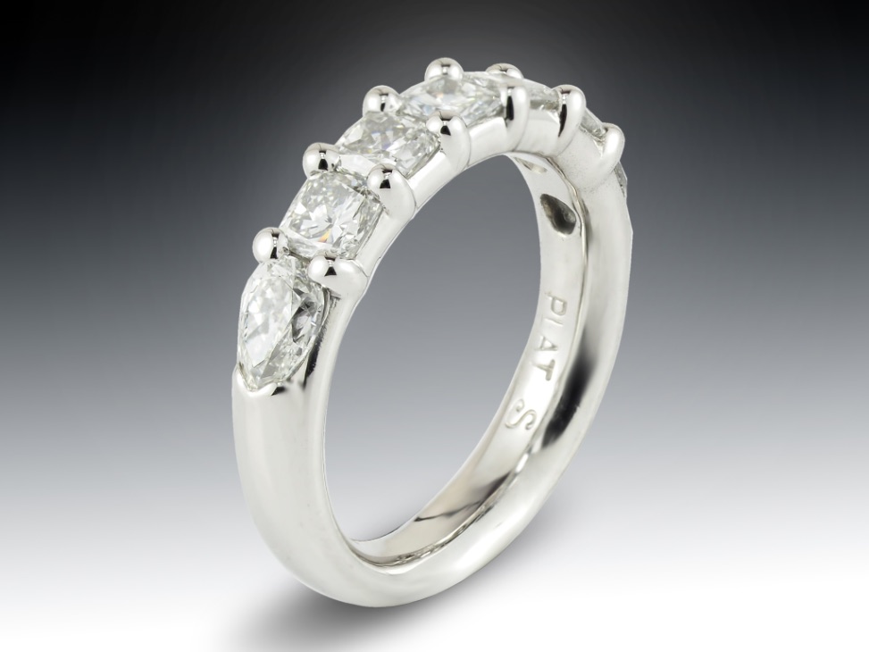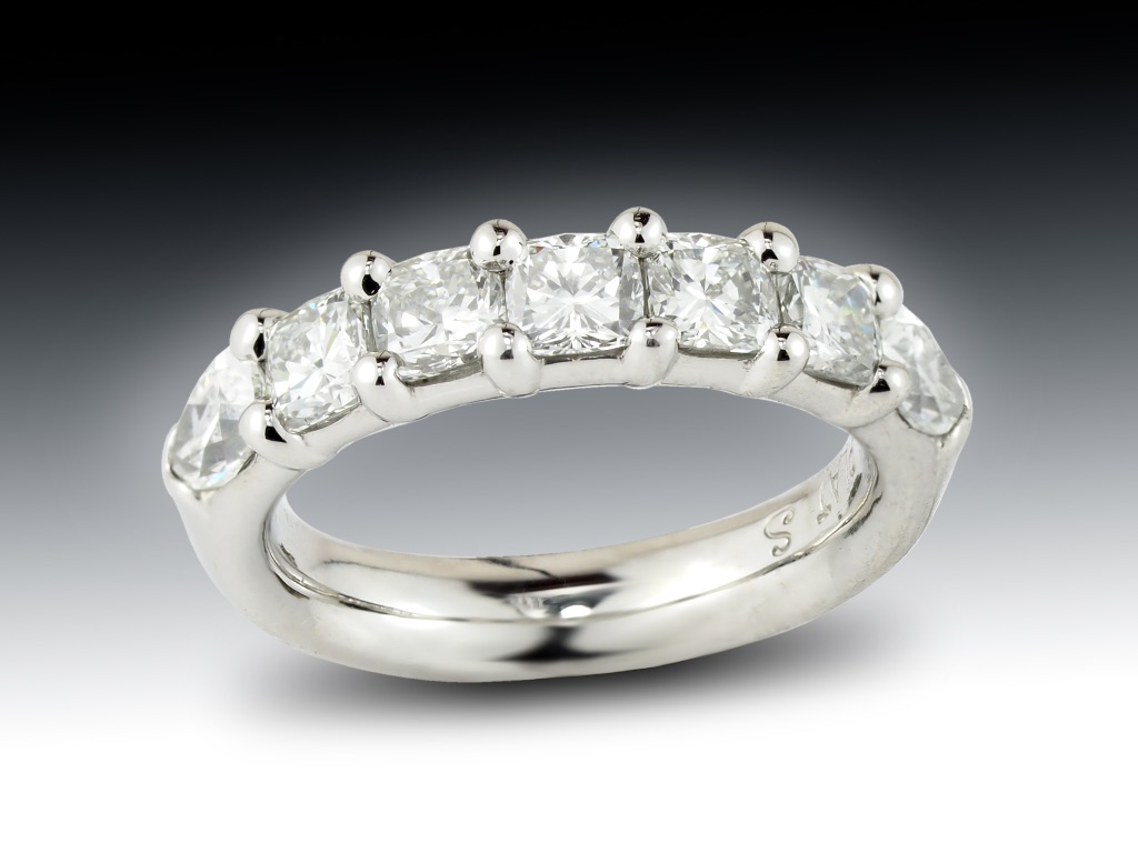This diamond prong band was custom designed and crafted at our shop in Boston. Contact us to schedule your design consultation.