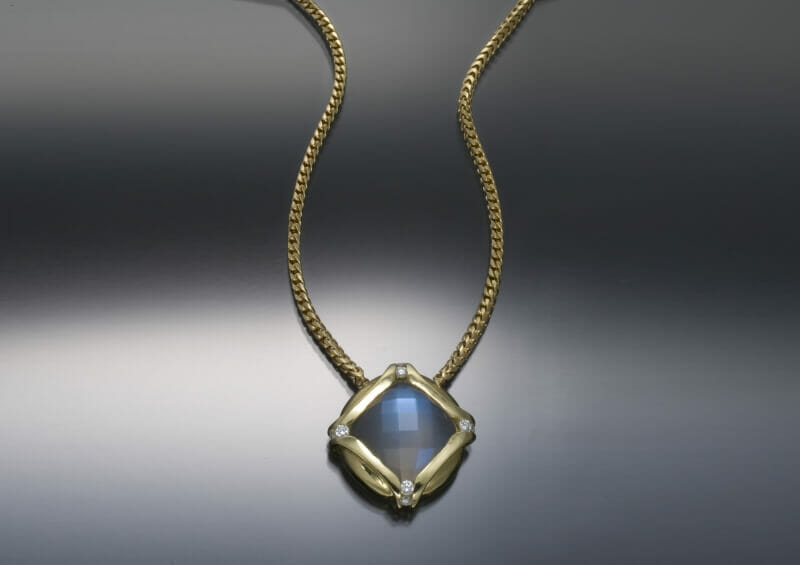View Larger Image Faceted Moonstone PendantSkylight Jewelers2016-11-21T16:47:41-05:00 Faceted Moonstone PendantDesigner 18k yellow gold pendant set with a faceted moonstone and diamond accents. Share This Story, Choose Your Platform! FacebookXLinkedInTumblrPinterestEmail Related Projects