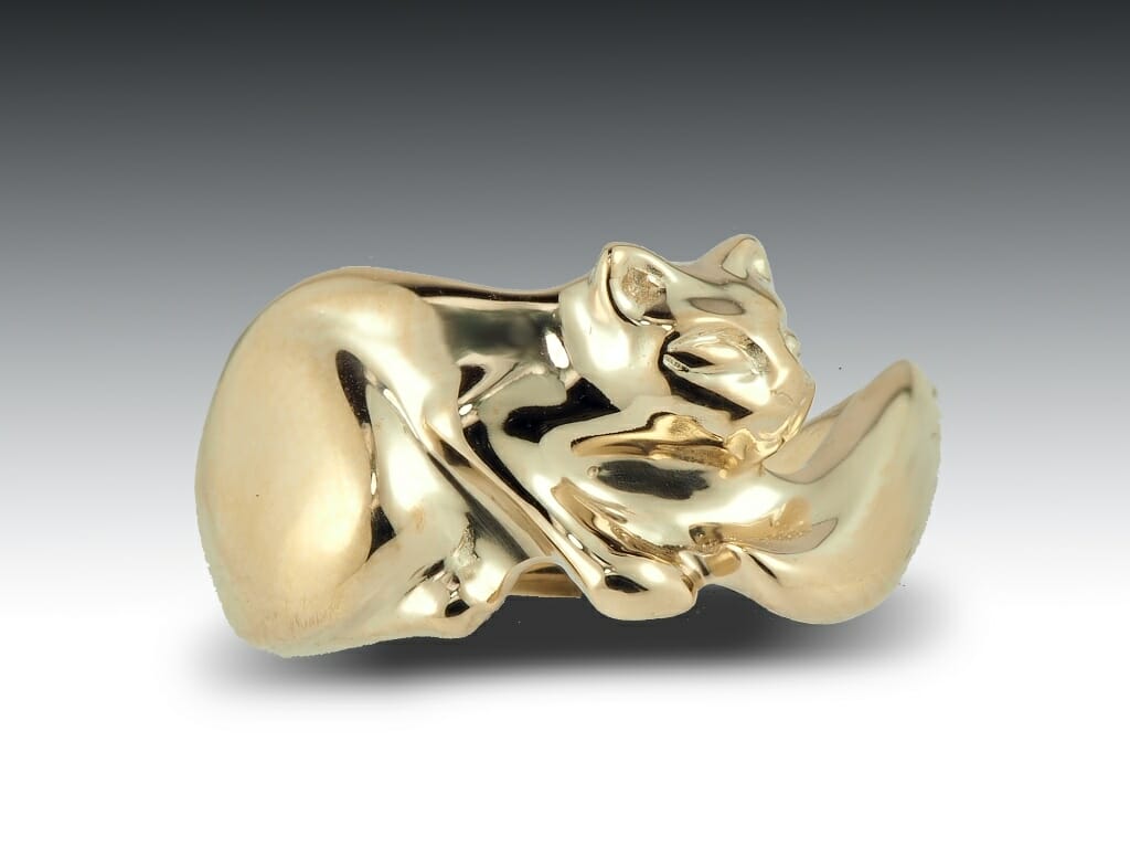 View Larger Image Gold Cat RingCaitlin2023-03-14T14:53:31-04:00 Gold Cat RingCustom commissioned solid 14k yellow gold cat ring. Hand crafted at our shop in Boston. Share This Story, Choose Your Platform! FacebookXLinkedInTumblrPinterestEmail Related Projects