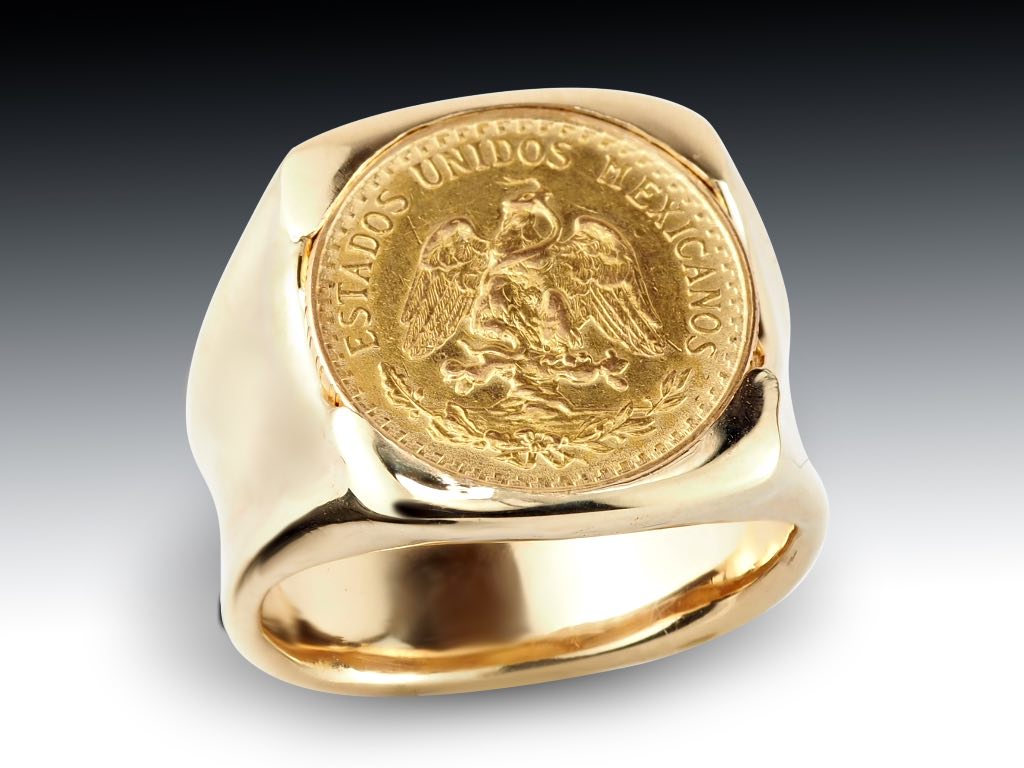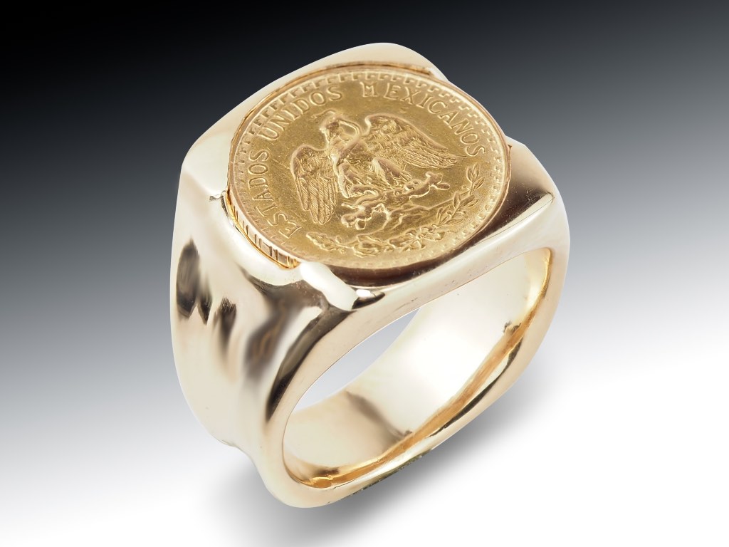 A bold statement of heritage and craftsmanship, this custom-commissioned ring features a polished gold band crowned with an authentic Mexican gold coin. The coin’s intricate eagle design adds depth and cultural significance, seamlessly set into a smooth, high-shine setting that highlights both tradition and modern style. Designed for those who appreciate meaningful, one-of-a-kind jewelry, this piece blends timeless symbolism with a strong, contemporary presence.