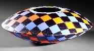 Martin Kremer’s fused glass art is influenced by texture and pattern from Native American fabrics, Italian masonry, classic quilts, and wood marquetry. Fusing, or kiln-forming, is an ancient technique that is currently undergoing a revival. In fusing, the piece is set up cold, using a variety of techniques in common with traditional stained glass and mosaics. Firing in an electric kiln follows at temperatures up to 1800 degrees F. Grinding, sandblasting and polishing complete the piece.