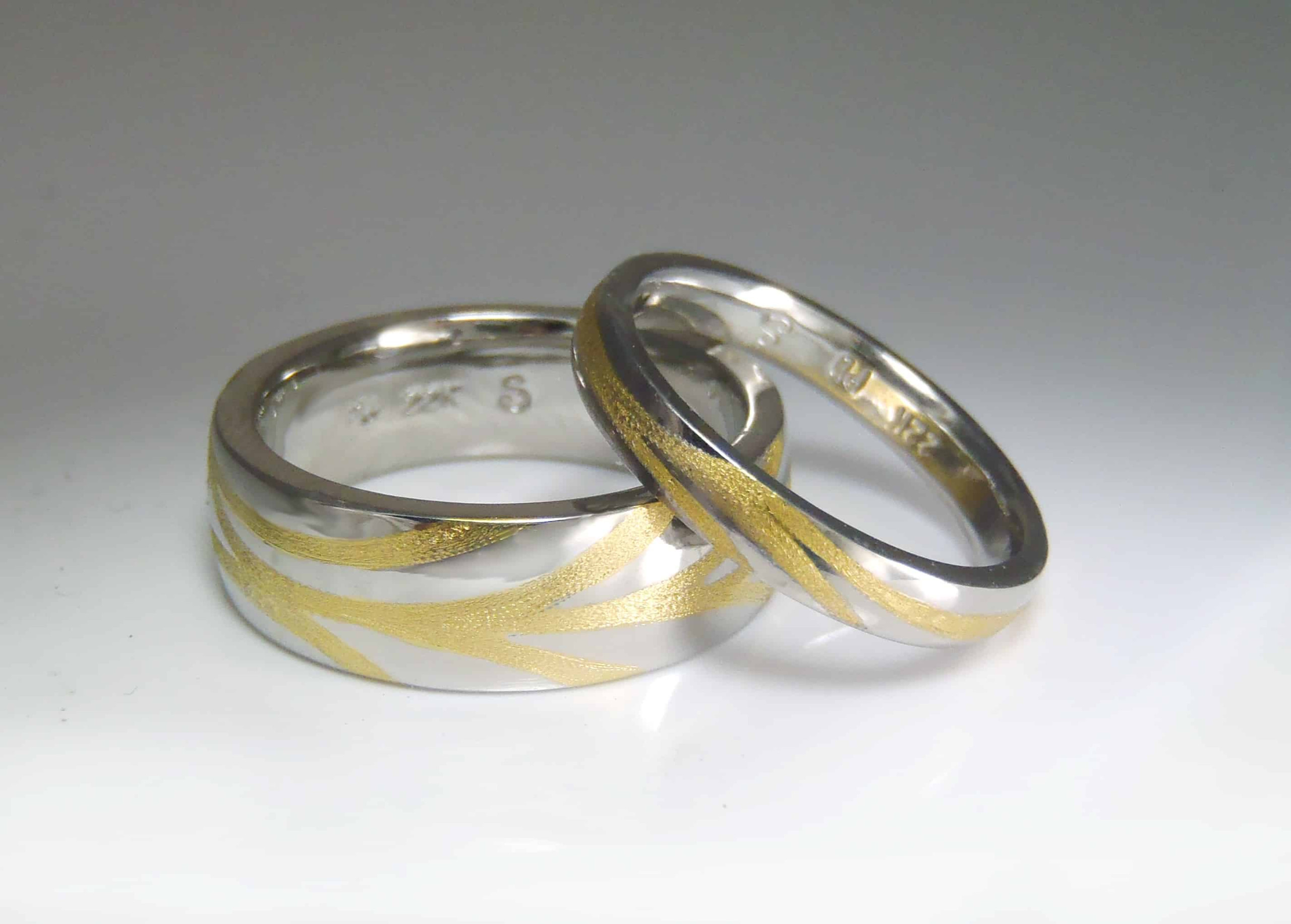 View Larger Image Palladium & 22K BandsSkylight Jewelers2017-08-22T11:49:31-04:00 Palladium & 22k wedding band setA custom designed wedding band set in palladium with 22k gold inlay. Share This Story, Choose Your Platform! FacebookXLinkedInTumblrPinterestEmail Related Projects