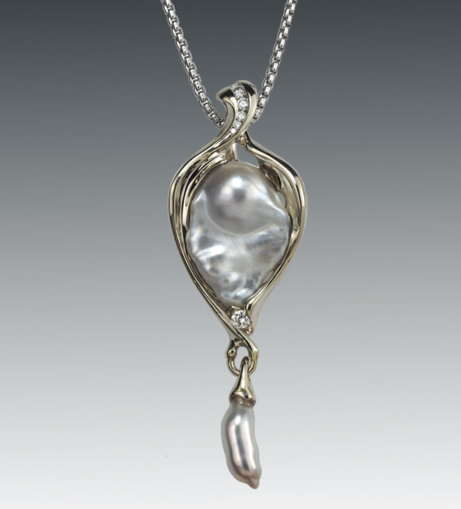 View Larger Image Pearl Dangle PendantSkylight Jewelers2019-03-21T12:18:56-04:00 Pearl Dangle PendantWhite freshwater pearls and diamonds in a white gold custom designed pendant. Share This Story, Choose Your Platform! FacebookXLinkedInTumblrPinterestEmail Related Projects