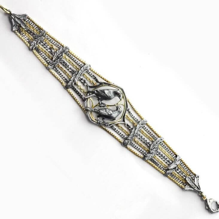 Silver and Gold Crow Bracelet