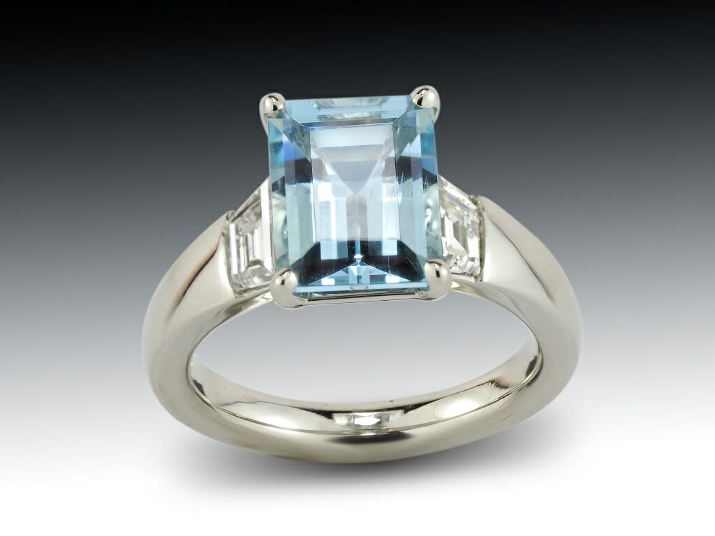View Larger Image Step Cut Aquamarine Diamond RingCaitlin2023-03-10T13:53:55-05:00 Step Cut Aquamarine Diamond RingA custom designed white gold ring with step cut aquamarine and side diamonds with a tapered modern shank. Share This Story, Choose Your Platform! FacebookXLinkedInTumblrPinterestEmail Related Projects