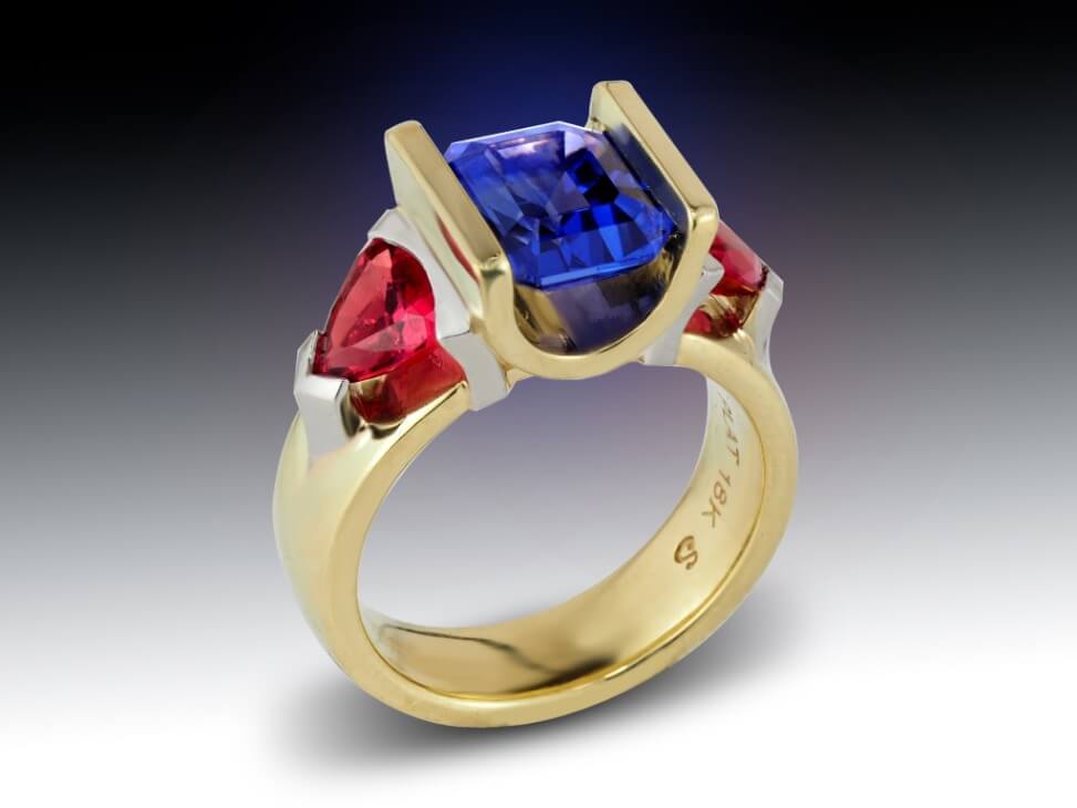 Tanzanite and Red Spinel 18K Ring