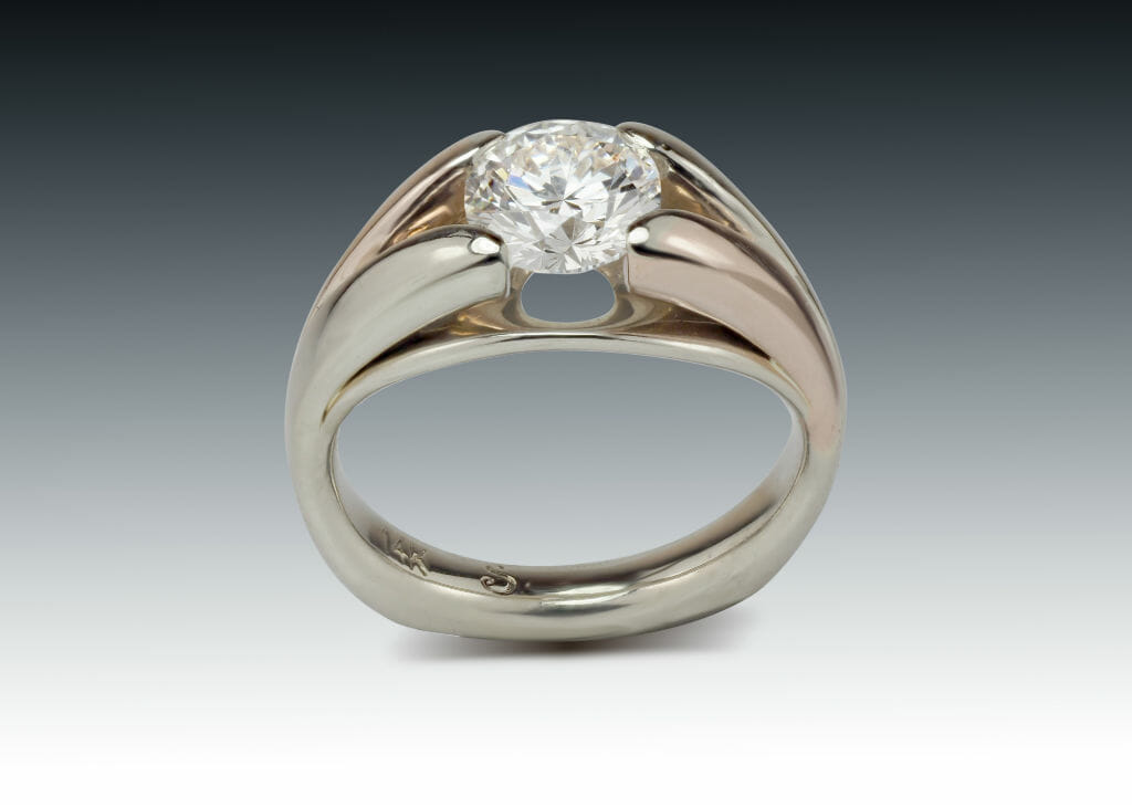 View Larger Image Two Tone Diamond SolitaireSkylight Jewelers2019-03-21T12:33:35-04:00 Two Tone Diamond Solitaire Engagement RingCustom designed diamond engagement ring in white and rose gold. Share This Story, Choose Your Platform! FacebookXLinkedInTumblrPinterestEmail Related Projects