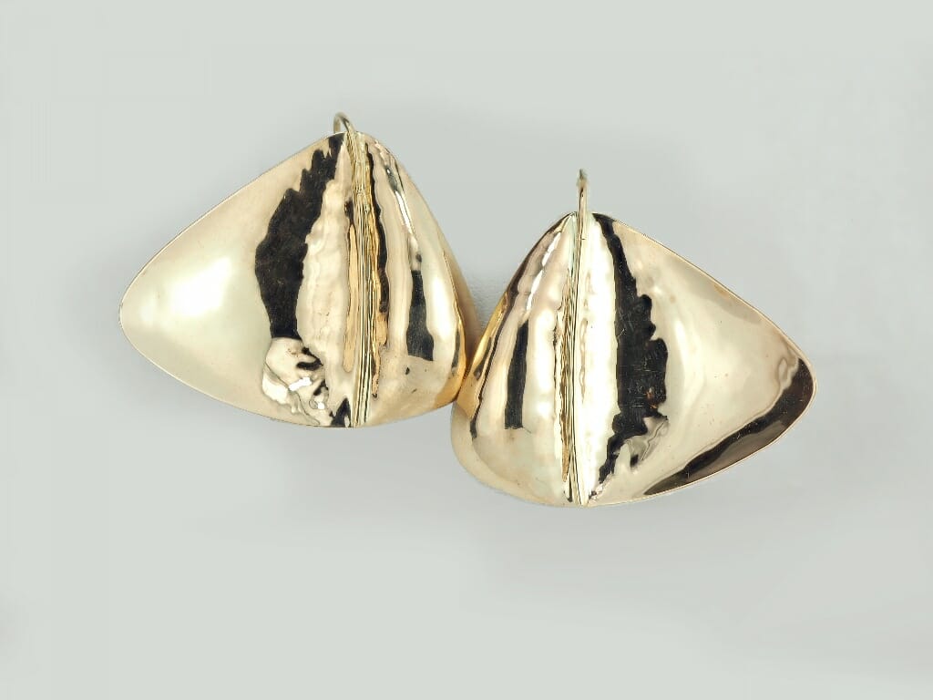 These gold repousse earrings are handcrafted, from our studio in Boston. These earrings were created using the technique of repousse, or hammering into relief from the back side.