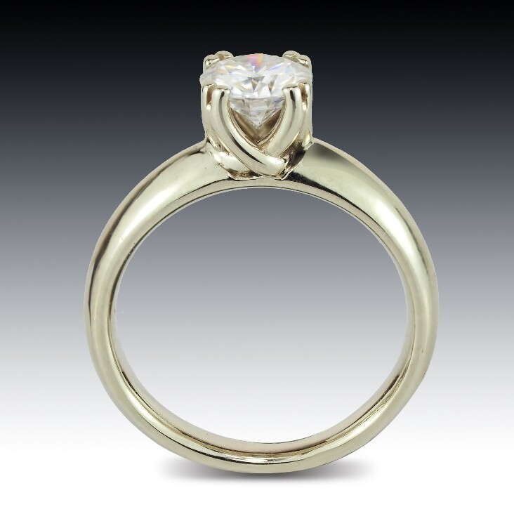 All of our ready-to-wear moissanite rings are available for customization with diamond instead of moissanite. Price will vary depending on the diamond chosen. Please contact us for customization inquires before placing any orders.