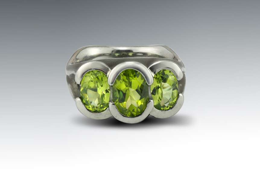- oval peridots: one 8.5mmx6mm and two 7.5mmx5mm